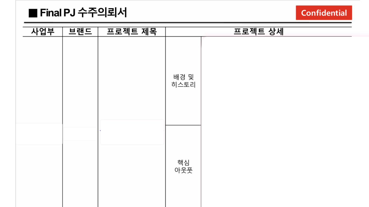 장표 구성 방법 등 산학협력 프로젝트 수행에